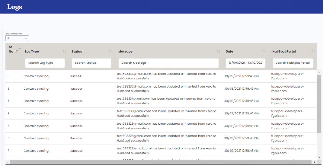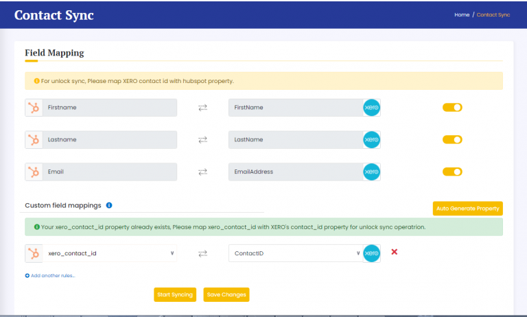 After the successful authentication of HubSpot Portal and Xero App you will be redirected to app Dashboard page.